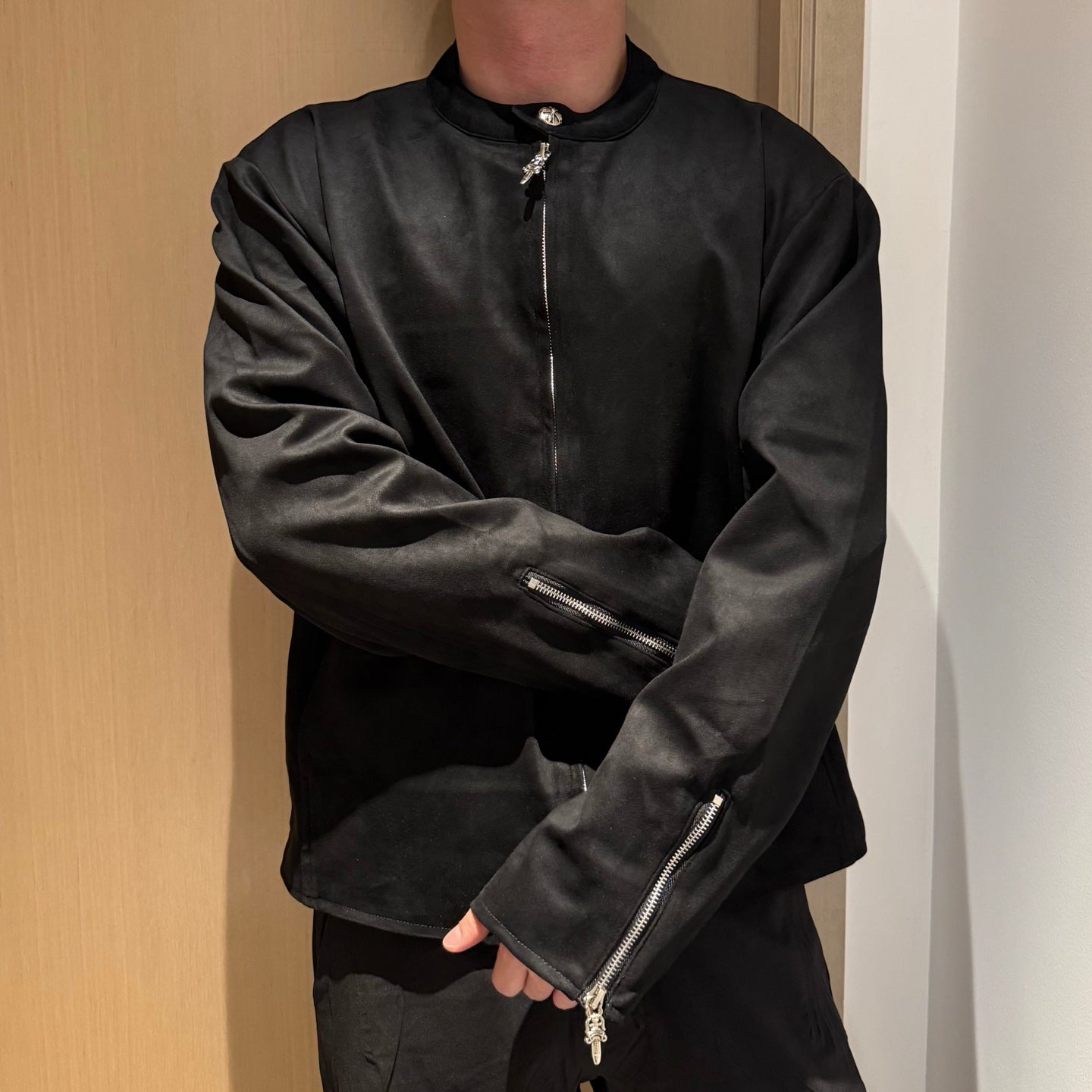 Chrome suede varsity jacket